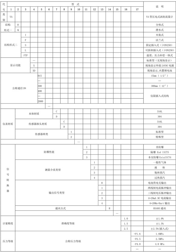 ▮渦街流量計產(chǎn)品型號標記