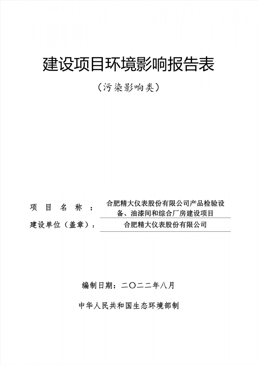 合肥精大儀表股份有限公司產(chǎn)品檢驗設備、油漆間和綜合廠(chǎng)房建設項目環(huán)境影響評價(jià)報告表公示